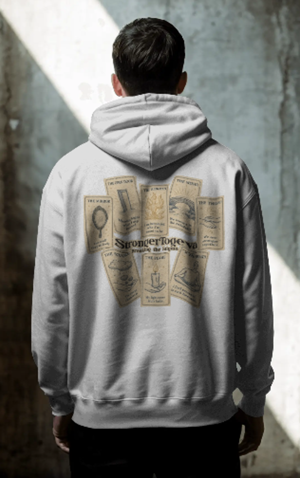 Step into your own story of healing with the Healing Arcana Hoodie — a design inspired by tarot symbolism and the journey of mental health. Each card represents a piece of our inner landscape: the anchor that grounds us, the mirror that reflects our truth, the storm we weather, the mask we shed, and the thread that holds us together.